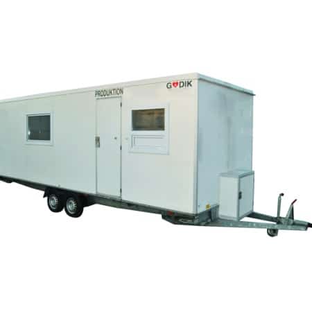 Produktionsvagn med förråd, kök, soffgrupp och kontor med leveranslucka artikel nr. 05116