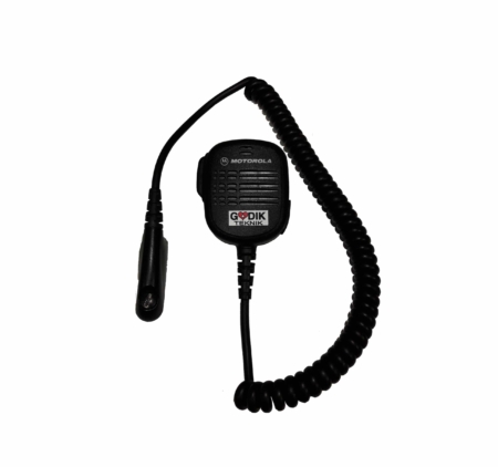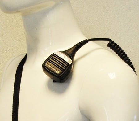 Handmikrofon med halsbandsklämma och hon för nålstick.