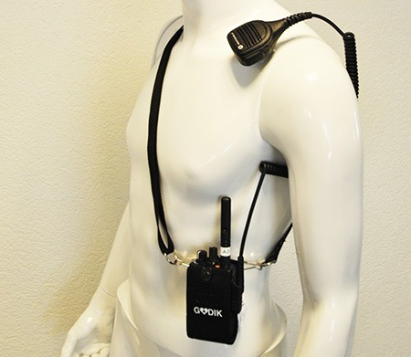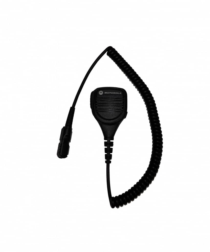 Handmikrofon med halsbandsklämma och hon för nålstick.