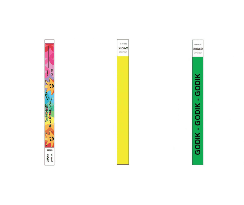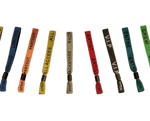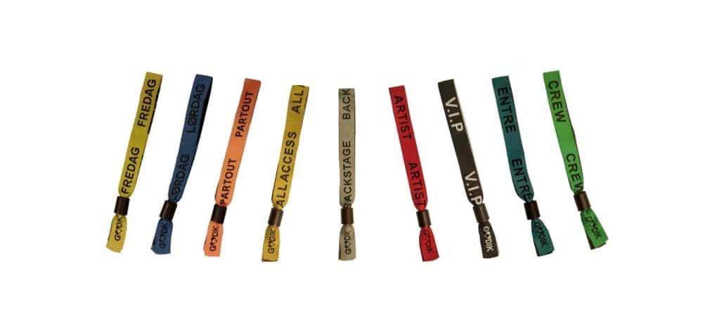 Varje säsong levererar Godik armband till landets största evenemang och vi är stolta över att se till att våra kunder får rätt armband. Vi tillverkar armband av väv, tyg och satin i olika bredder och med din egen design. Vi erbjuder flera olika stängare och du kan välja mellan olika material, till exempel plast och aluminium. Personliga armband är en process – kontakta GODIK SALES för en offert.