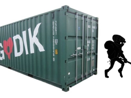 10″ fyrverkeribehållare med sprinklersystem, utskjutningsgaller, brandslang...