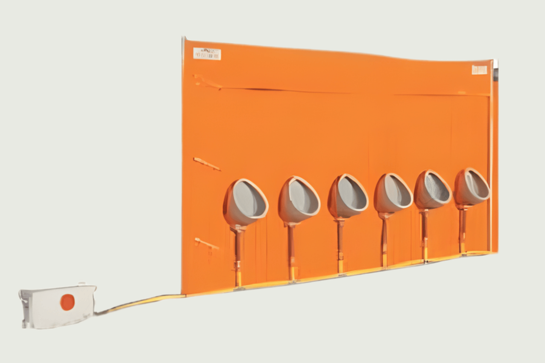 6 urinaler, 1 st. slang med snabbkopplingar för anslutning till avloppskvarn, 1 st. stängselduk.