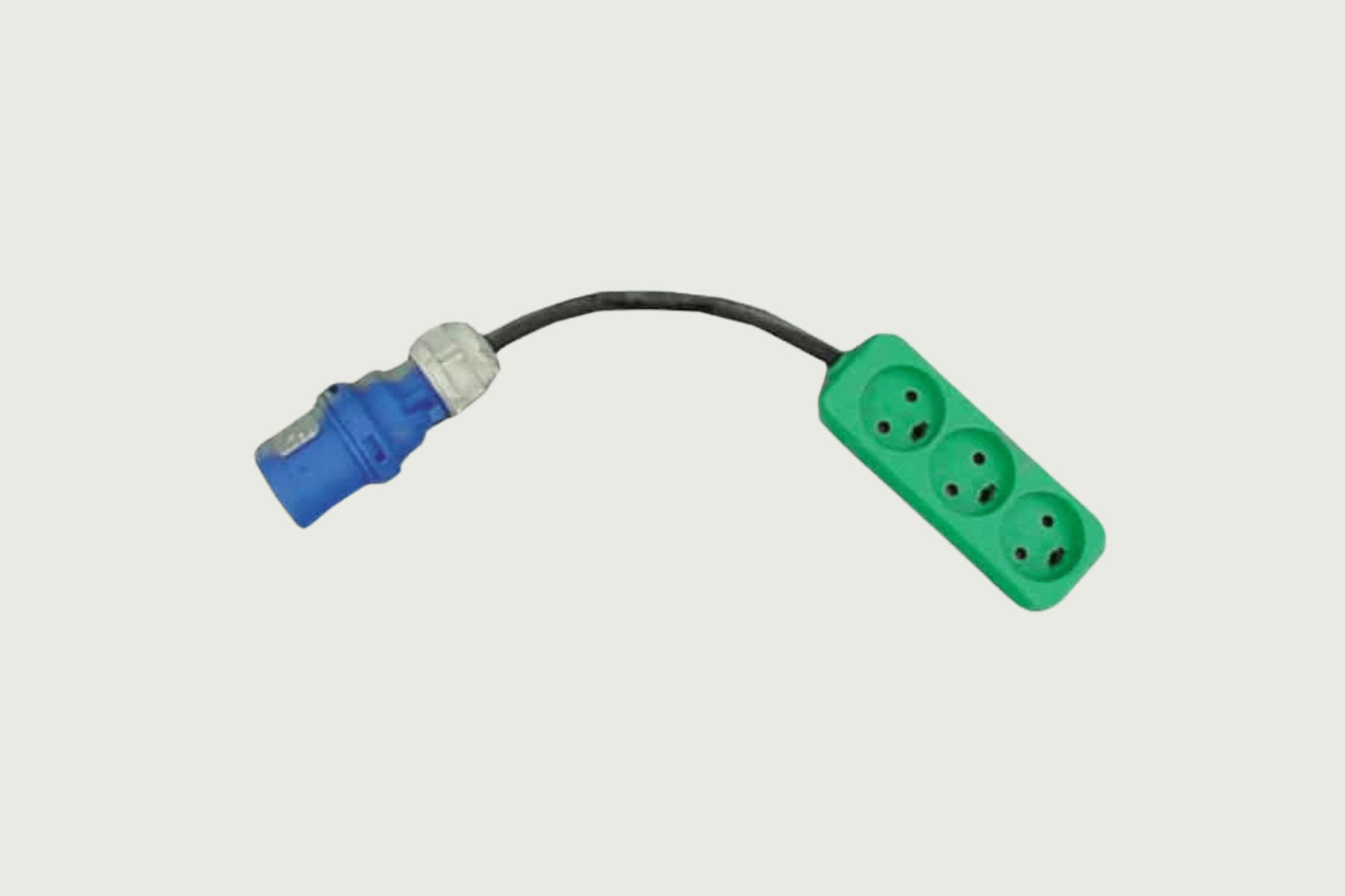 Adapterkabel 1x 16A blå CEE hane till 3 st. 230V 1x 10A DK hona.