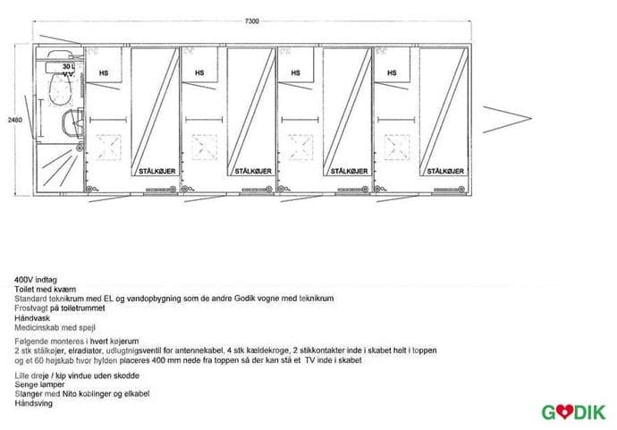 - Ytter mått: H: 295 cm, B: 250 cm, L: 730 cm.