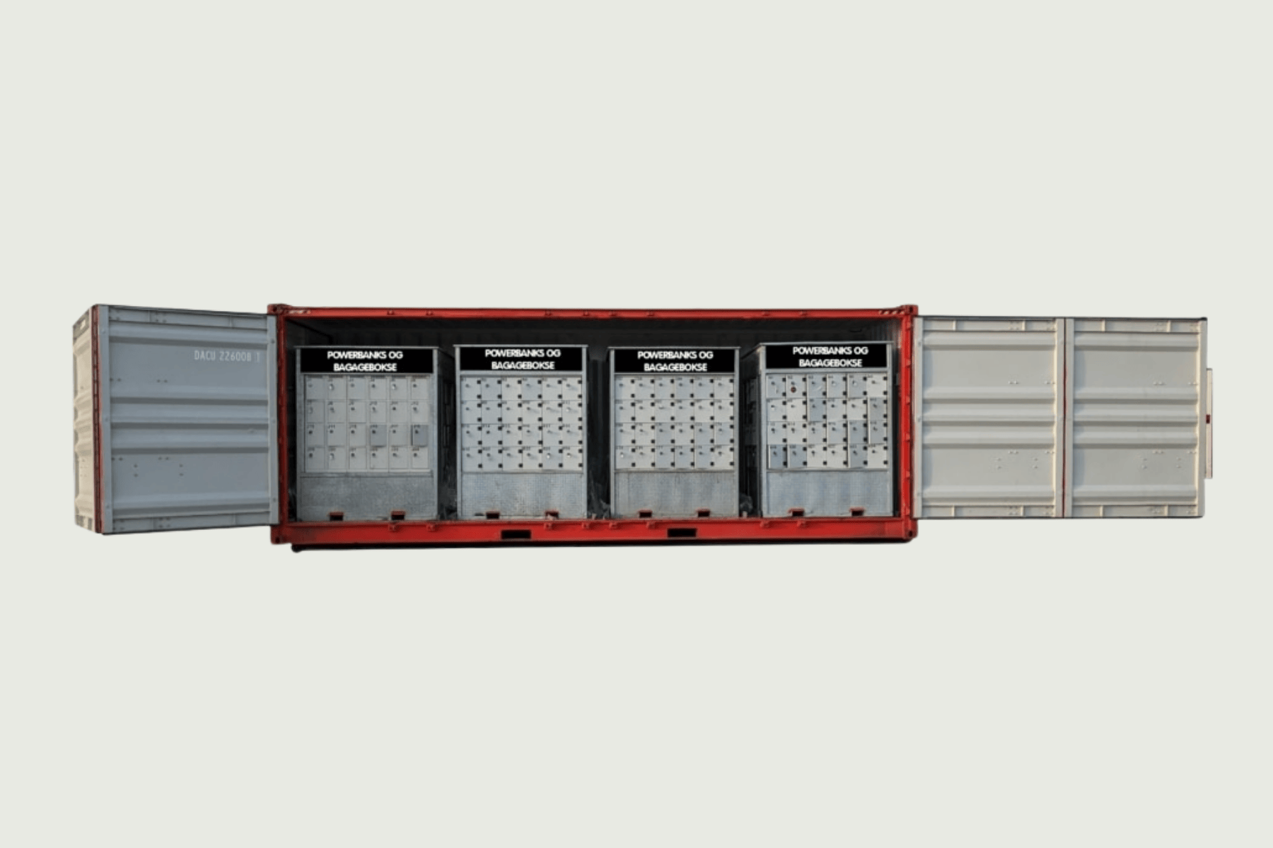- Möjlighet till onlinebetalning via mobil genom webbapp: betalning med MobilePay, kort, ApplePay eller GooglePay. Ljuskylt på toppen. Leverans: Levereras i container med 4 moduler med 72 boxar och 64 powerbanks. Det finns 3 olika externa ladduttag så kunder kan ladda telefoner utan powerbank. Hyrestagare får kod för att öppna bagageboxarna. GRATIS uppställningsmöjlighet: Godik ställer upp bagageboxar och powerbankmoduler mot att Godik får betalning från slutkunden.