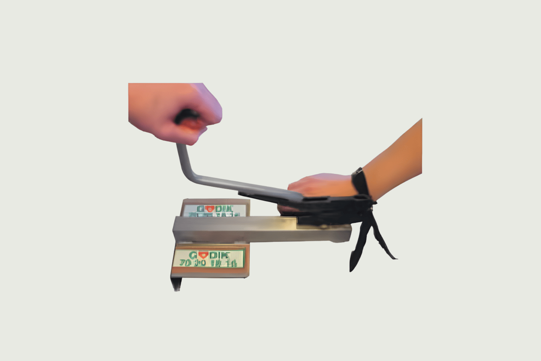 Manuell armbandsstängare. Monteras på bord.