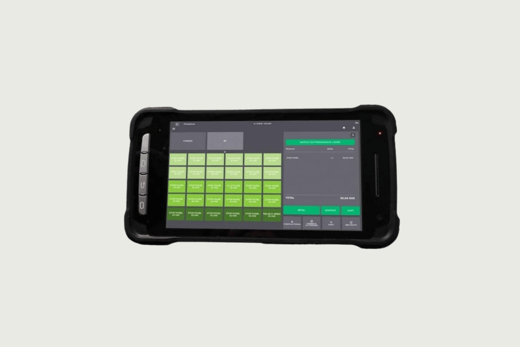 Ansluten via mobilnät 4G / WiFi. Upplyst tangentbord. Batteribackup. Färgskärm. Kontaktlös (NFC), armband, personal- och presentkort. Laddkabel. Upp till 8 timmars användning per laddning. Streckkods- och QR-skanner.