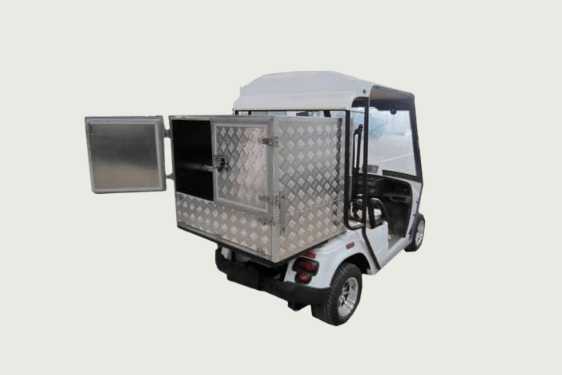 Cargobox med hylla och låsbeslag med 6 mm hål för hänglås.