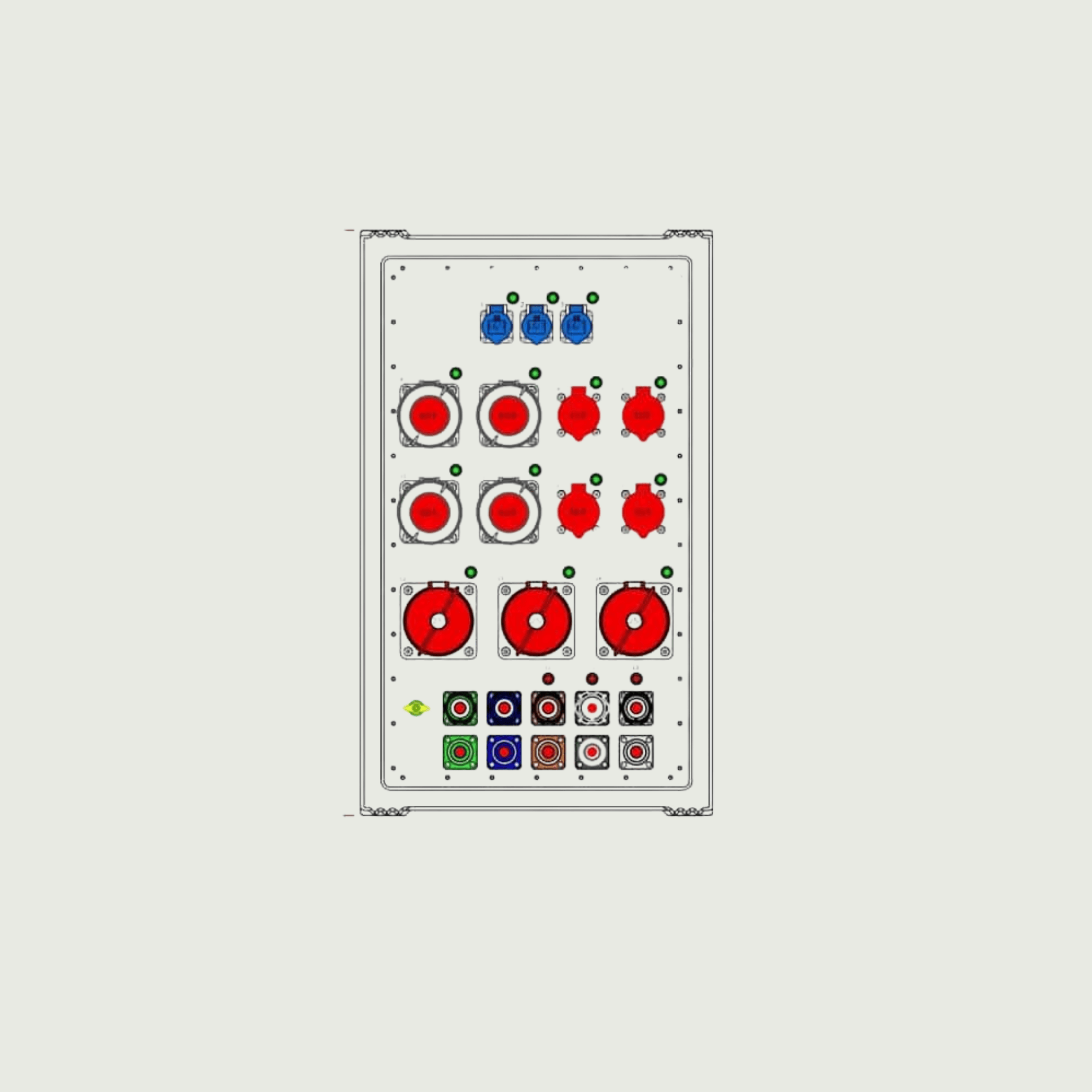 3x 125A. 4x 63A. 4x 32A. 3x 230V blå CEE.