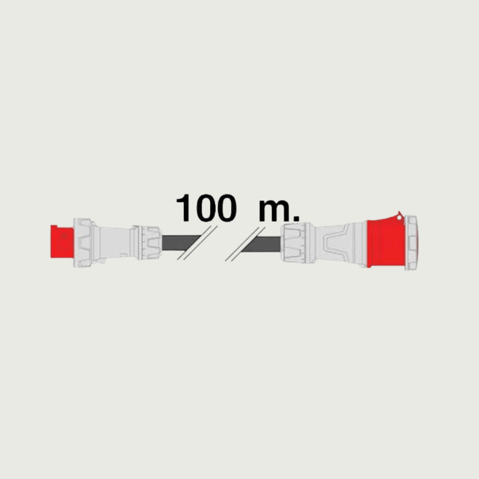 100 meter elkabel, 3x 125A/400V röd CEE. Max per kabelbox: 1HBOX.