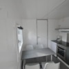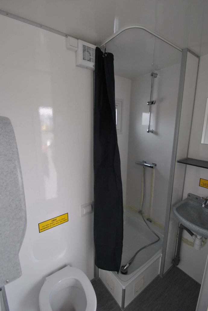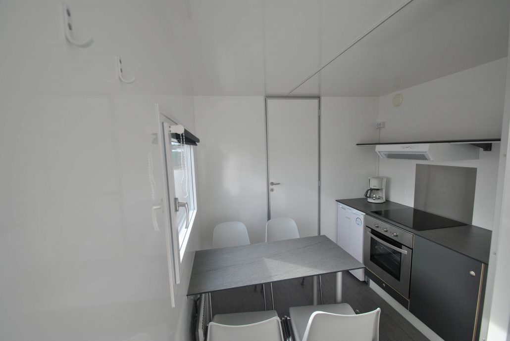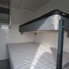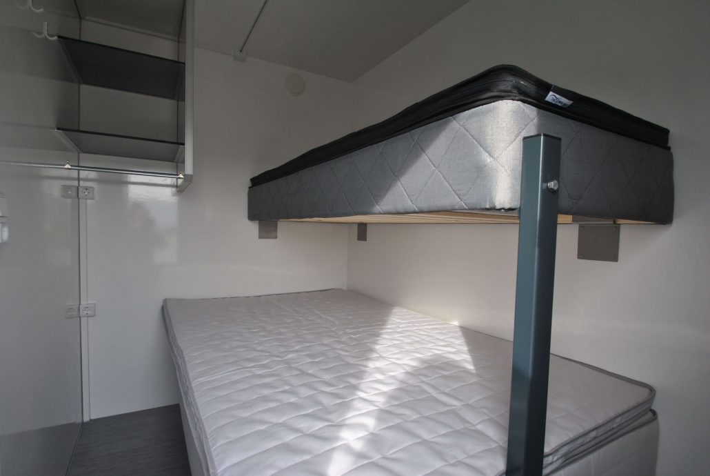 2 sovrum med 1 våningssäng med 3/4 boxmadrass i botten och 1 enkelsäng i toppen, kök, kylskåp, spis, spisfläkt, bord och 4 stolar, kaffebryggare, klädhängare, badrum med dusch, toalett, handfat, teknikrum med avloppskvarn.