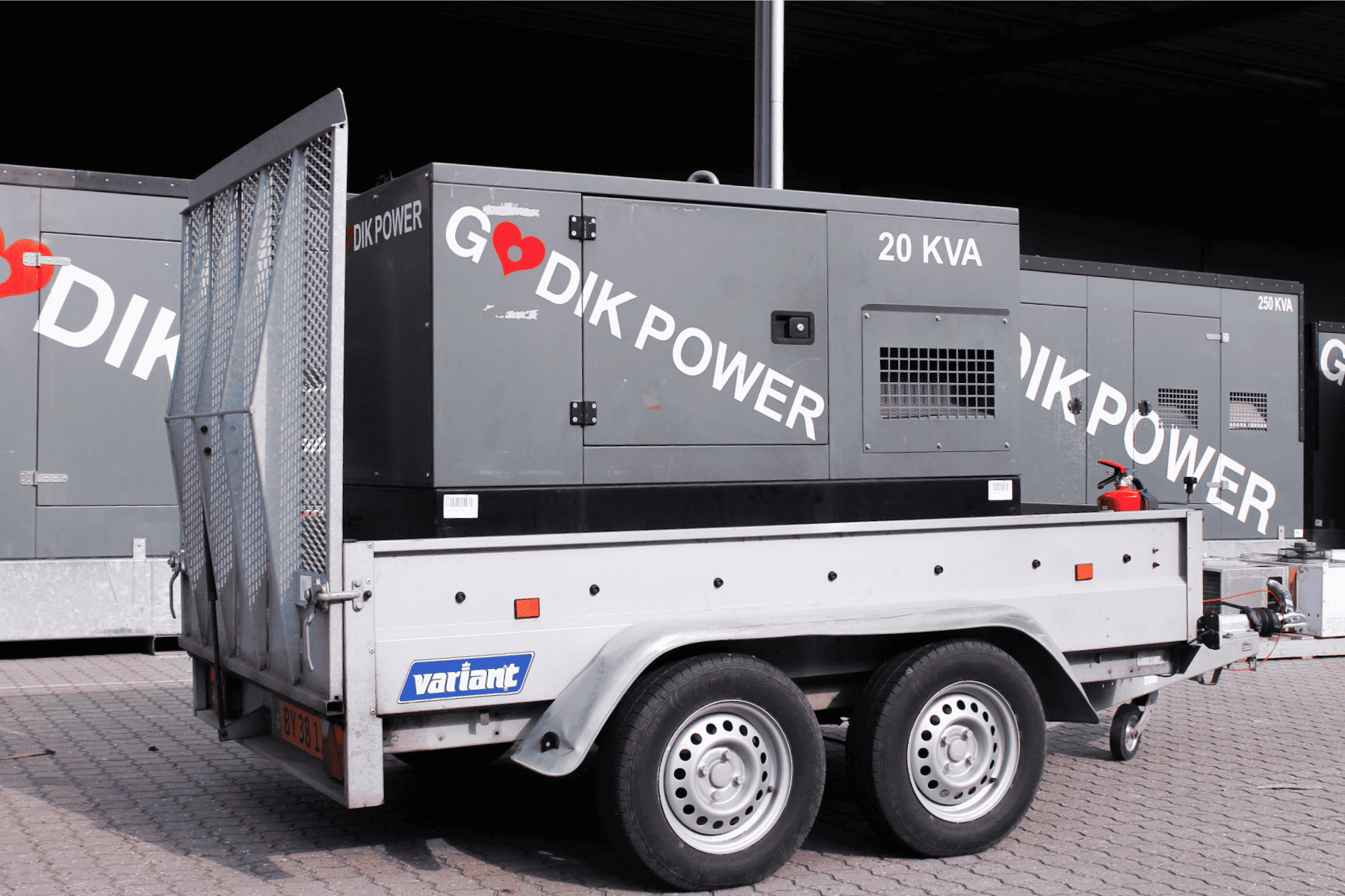 - Kontinuerlig drift upp till 80 % (endast kortvarig maximal belastning). På släpvagn. Generatorn är utrustad med GPS-spårningsenhet. Dieselförbrukning efterdebiteras.