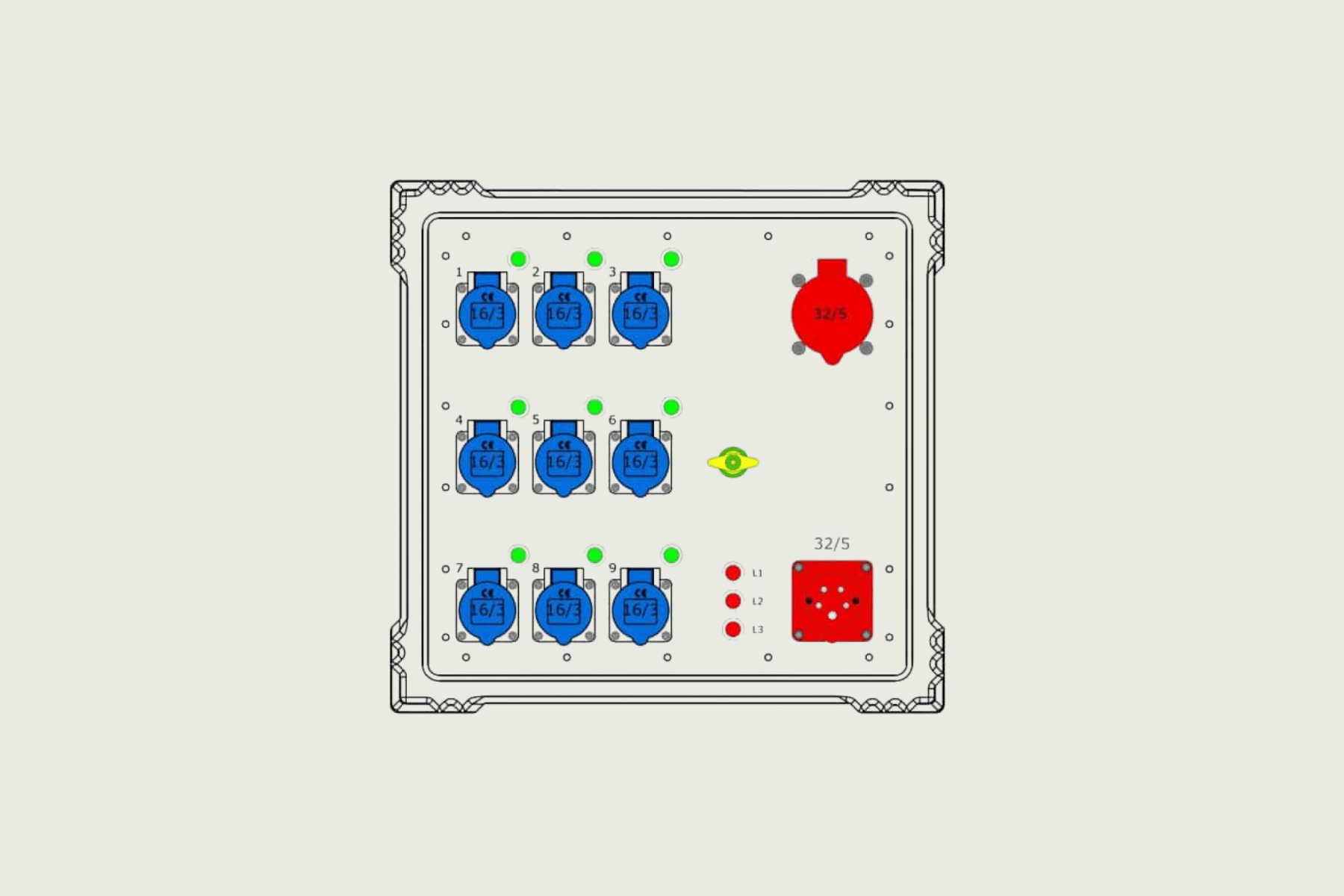 8BOX, 9 x blå CEEwmed 16A för säkring