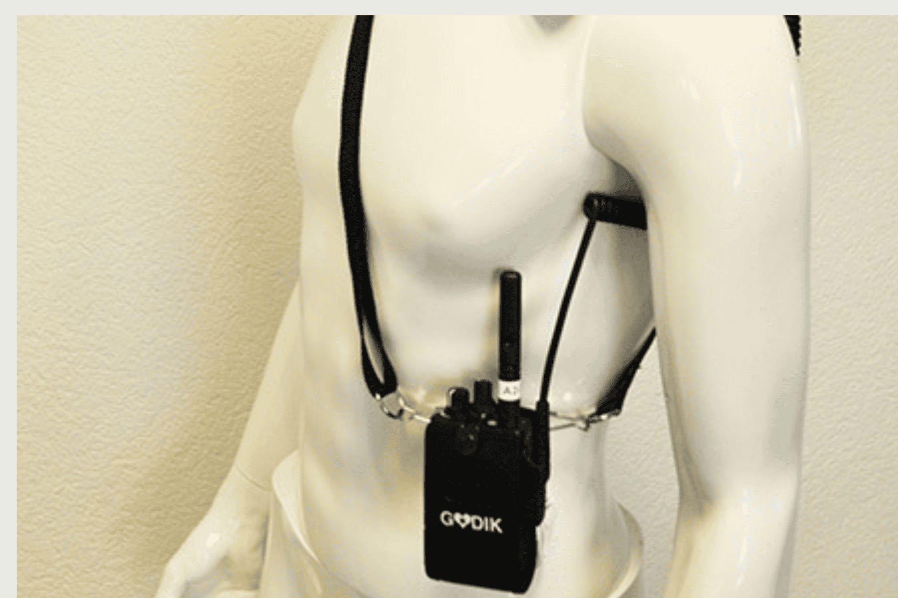 Handmikrofon med krageklämma och hane för pinnkontakt. Möjlighet för öronpropp, öronkrok eller öronsnäcka. För digitalradio.