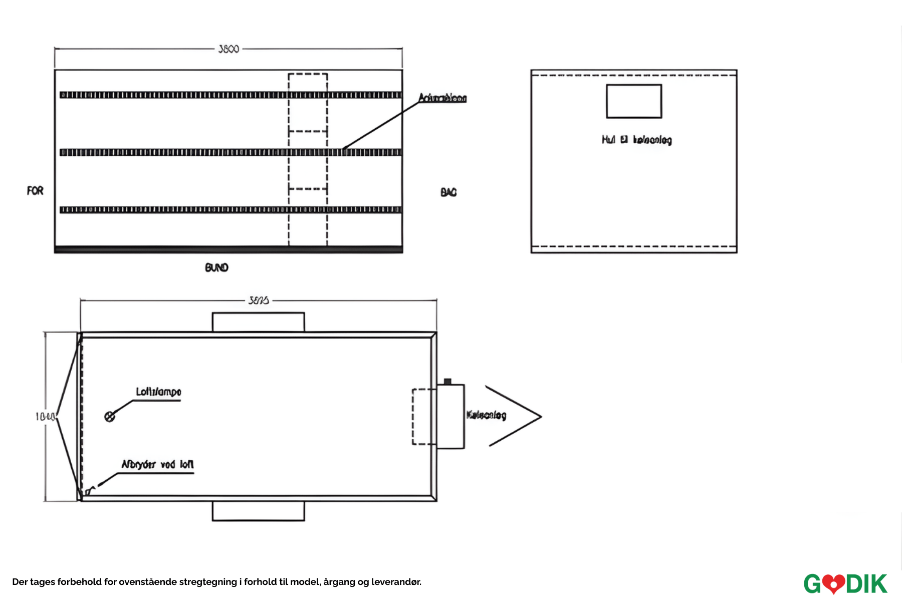 Höjdmått: Modell 1: utvändig 265/invändig 200. Modell 2: utvändig 248/invändig 181 cm. Längdmått: Modell 1: utvändig 395/invändig 378. Modell 2: utvändig 420/invändig 408 cm. Breddmått: Modell 1: utvändig 185/invändig 170. Modell 2: utvändig 234/invändig 170 cm. Uppställning: Släpvagnen måste vara jämn/i våg.