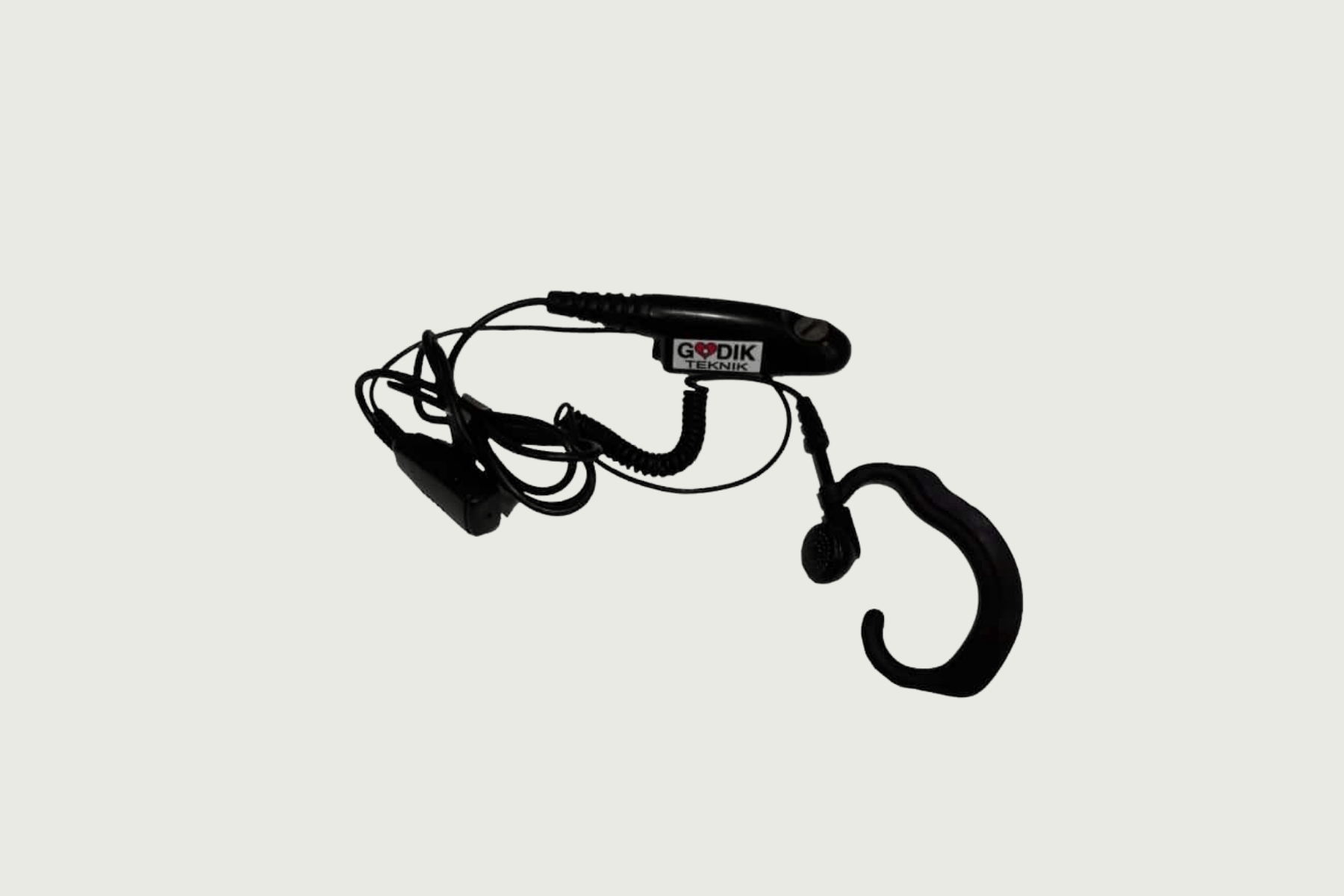 Öronhängare med mikrofon, PTT-knapp med krageklämma. För analog radio.