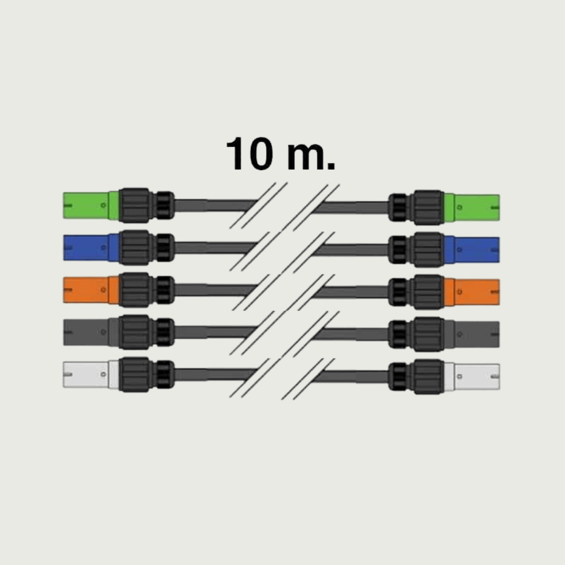 10 meter 400V 120 mm², 5 enkelledare, PowerLock hane till hona. Max per kabelbox: 2LBOX.
