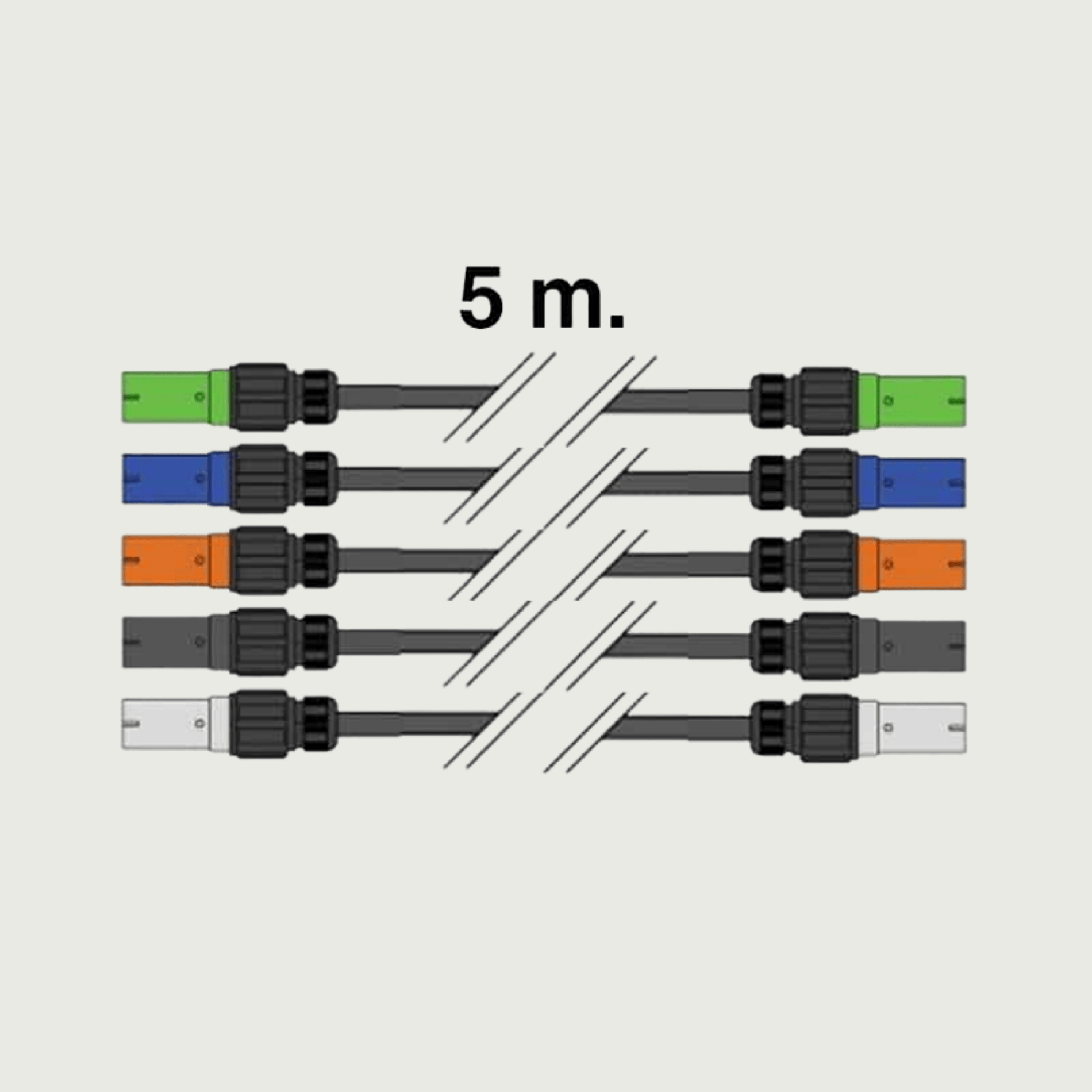 5 meter 400V 120 mm², 5 enkelledare, PowerLock hane till hona. Max per kabelbox: 4LBOX.