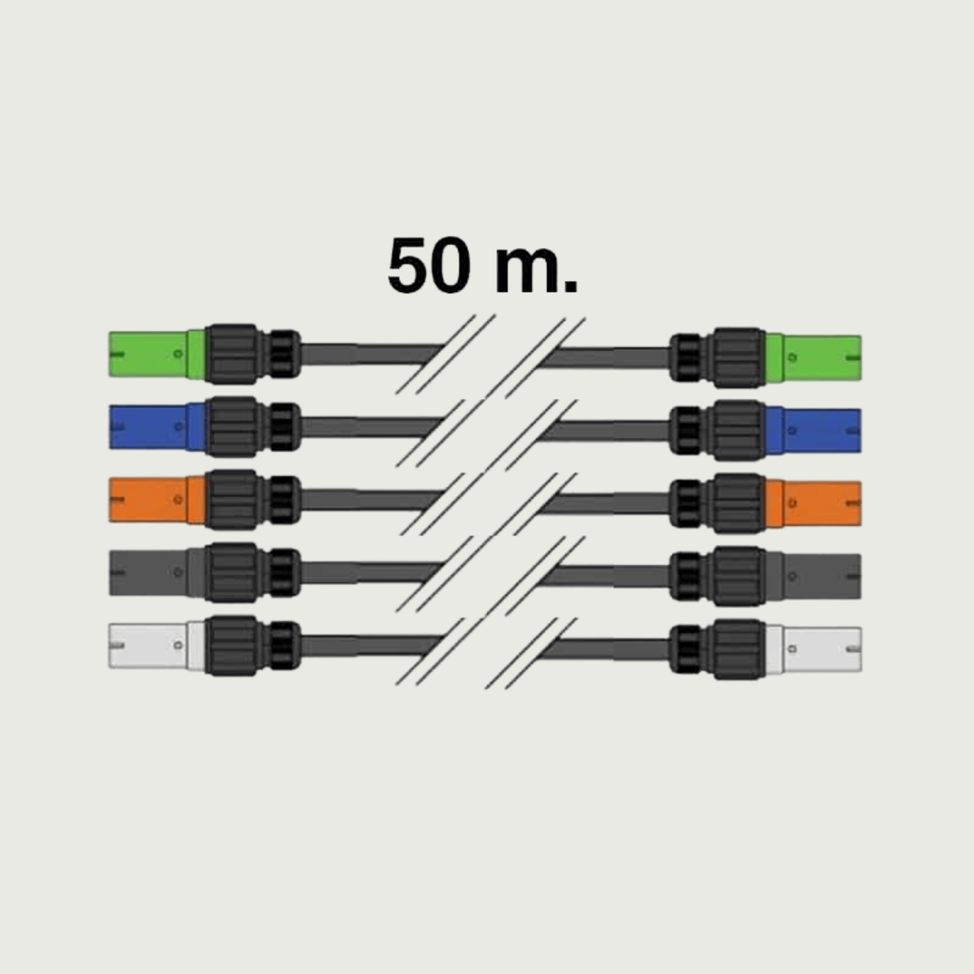 50 meter 400V 120 mm², 5 enkelledare, PowerLock hane till hona. Max per kabelbox: 1HBOX.