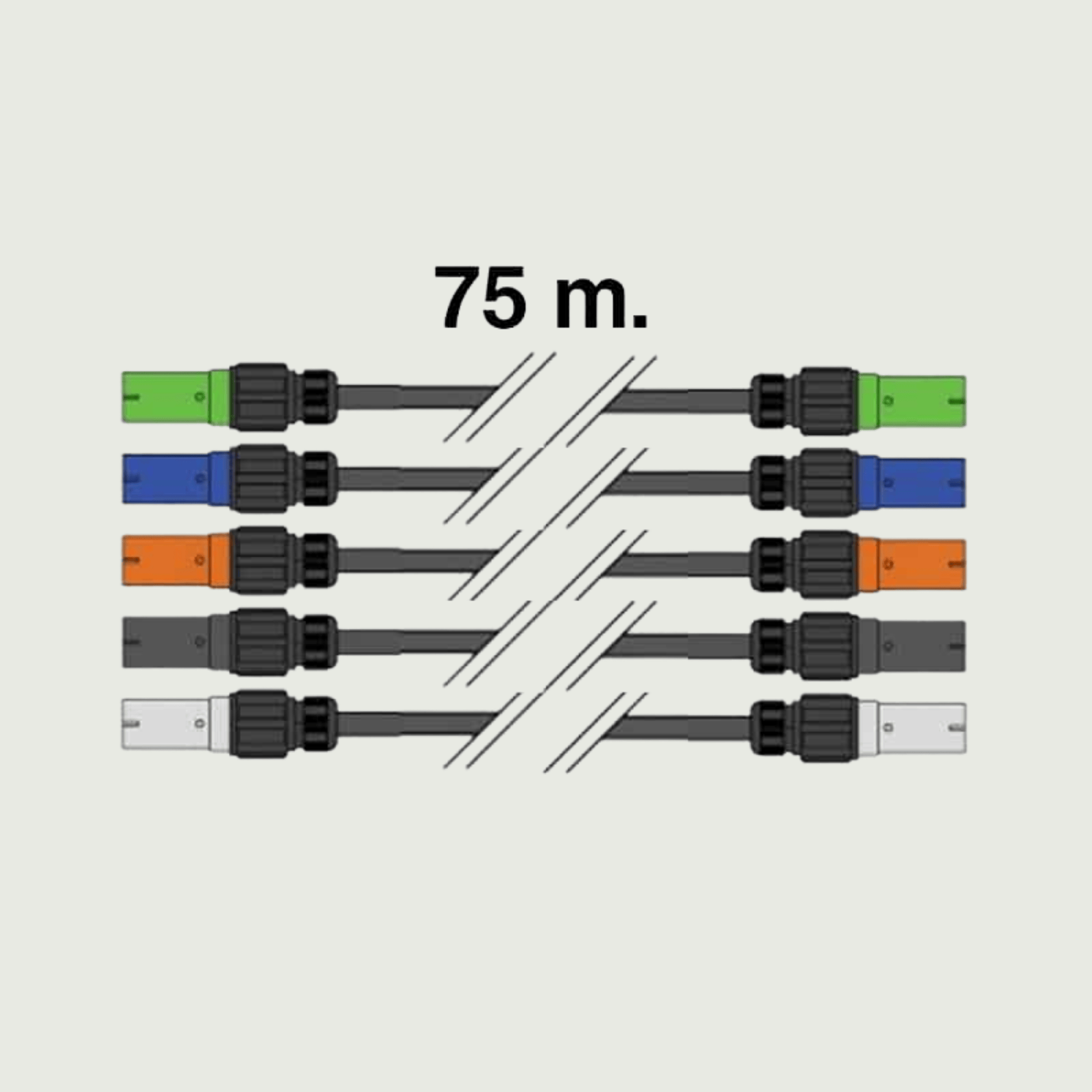 75 meter 400V 120 mm², 5 enkelledare, PowerLock hane till hona. Max per kabelbox: 1HBOX.