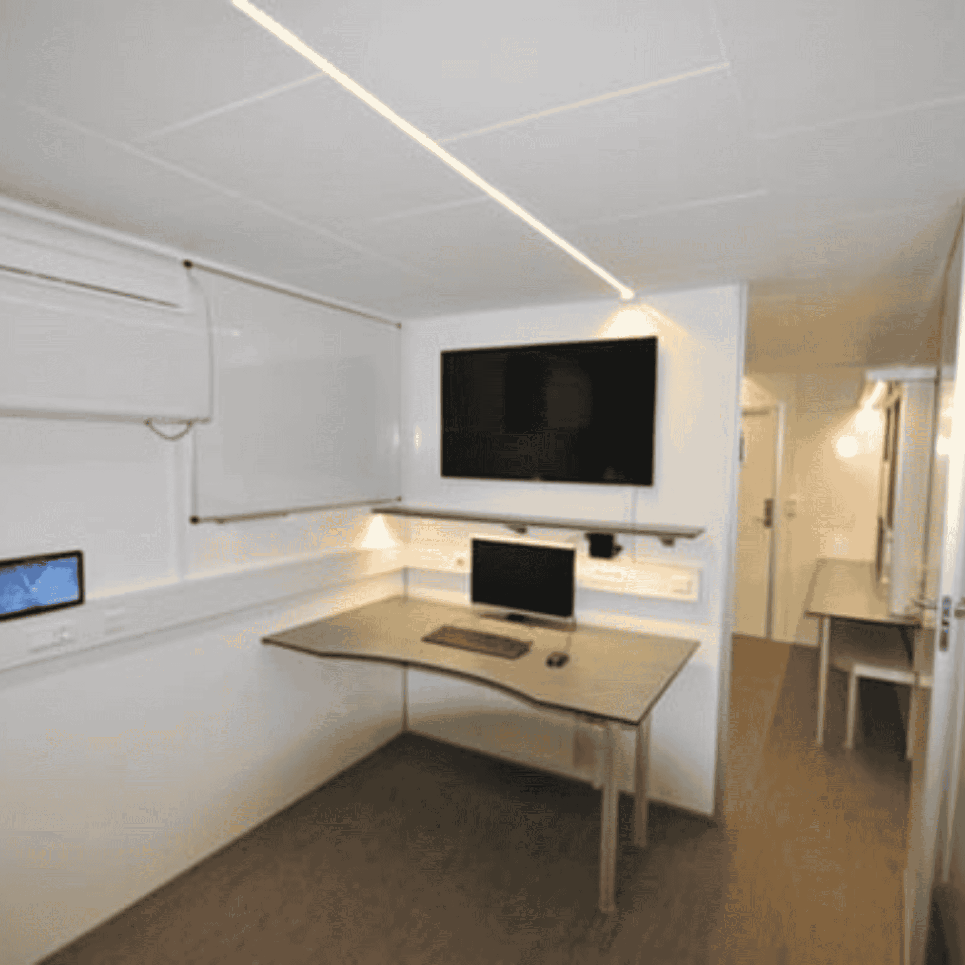 Fullt utrustat jourkontor från Godik – perfekt för säkerhet vid festivaler, evenemang och sportevenemang. Med fyra övervakningsplatser, ett nätverk av kameror och GPS-spårning, samt möjligheten att bemanna vid strömavbrott, får du en professionell och stabil kontrollpunkt på plats.