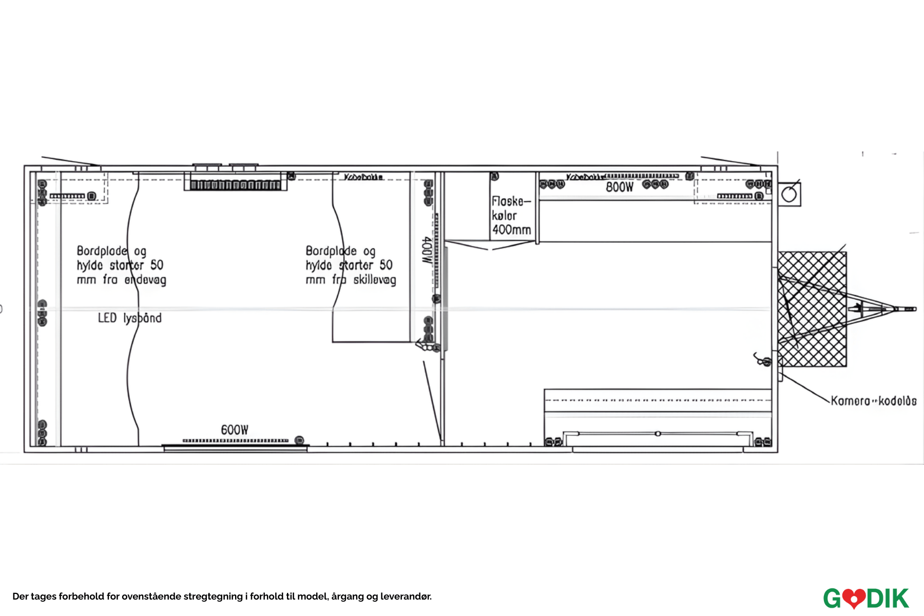 2 st. 42" och 1 st. 46" skärmar, 3 st. 22" PC-skärmar, 3 st. PC för övervakning och bearbetning, mus och tangentbord, reservkraft/luftkonditionering, kylskåp, högskåp, soptunna, 4 arbetsplatser med kontorsstolar. Fordonet är förberett med ett nätverk för kameraövervakning och radiostyrd GPS-spårning. Tillvalsutrustning: Kameraövervakning PTZ (artikelnr. 50217) samt installation, service, demontering.
